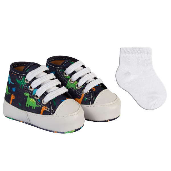 Sapatinhos duráveis: Sarja 100% algodão, forro em espuma jacar, cabedal em lona sintética ou camurça e palmilha de EVA.